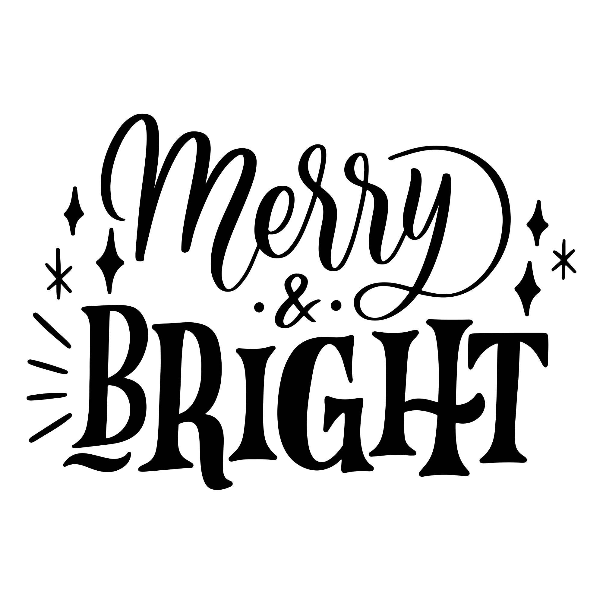 Preview: see image above — playful retro “Merry & Bright” with star accents and wavy baseline.